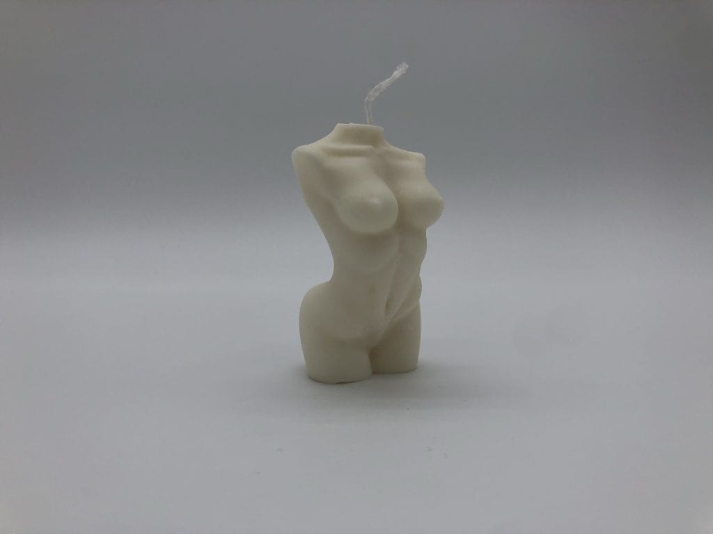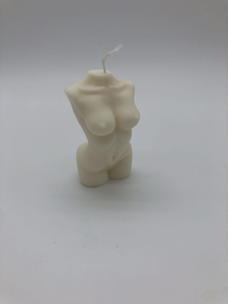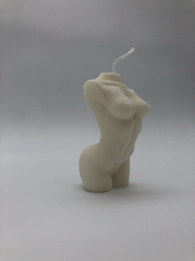 Lumanare decorativă Body Woman, cu înălțimea de 10 cm și greutatea de 90 g, turnată manual din ceară de soia 100% naturală. Forma artistică reproduce eleganța trupului feminin, perfectă pentru decoruri moderne, minimaliste sau pentru a fi oferită cadou la evenimente speciale.