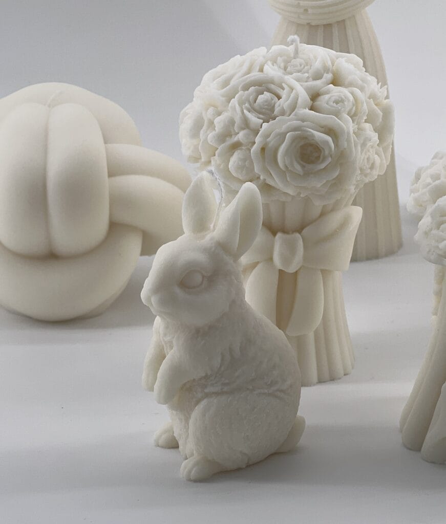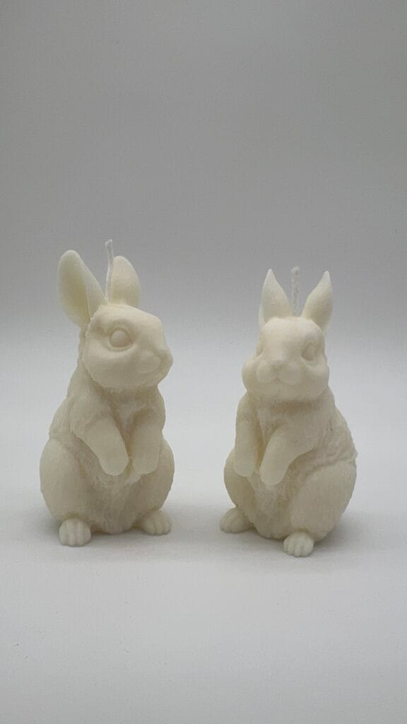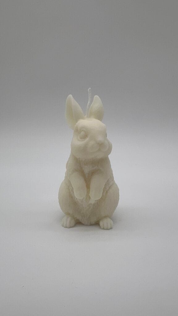 Lumanare decorativa Lapin, inspirata din forma simpatica a unui iepuras, perfecta pentru estetica moderna si minimalista a casei. Realizata manual din ceara 100% naturala, eco-friendly si vegana.