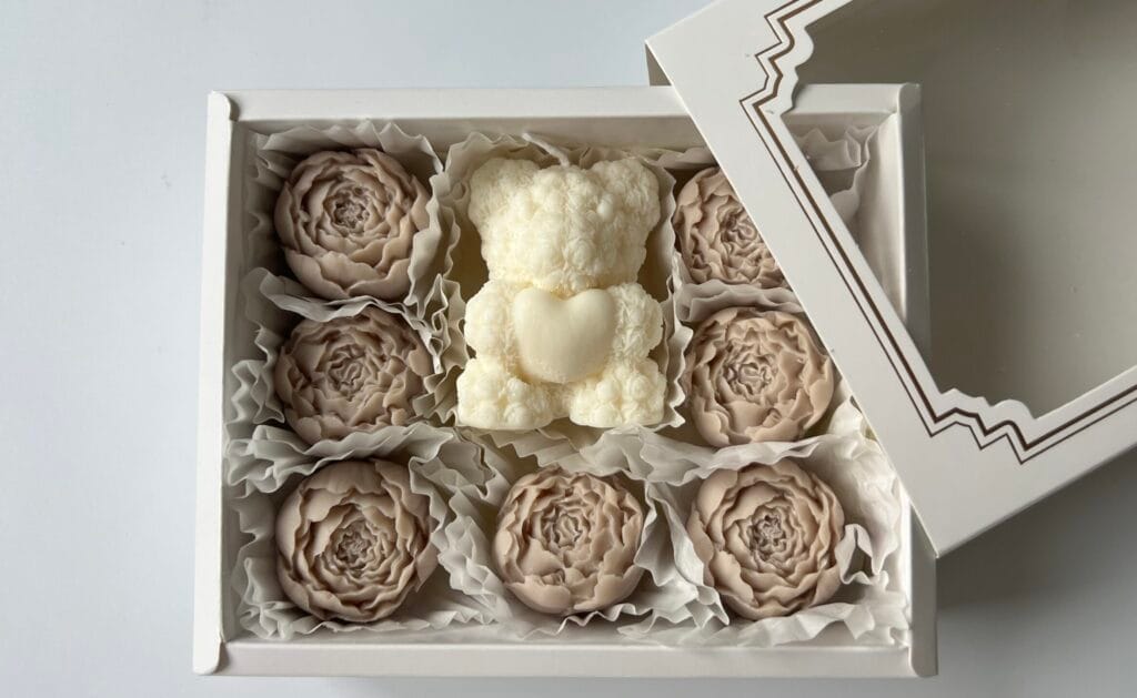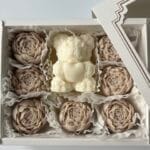 Set Bougie Ours + fleurs cire fondante