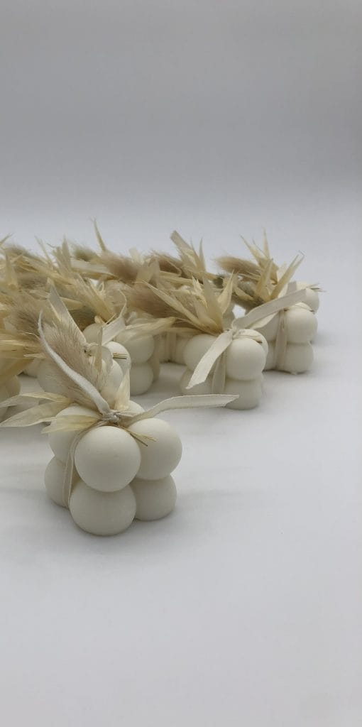 Lumanare artizanală din ceară de soia 100% naturală, dimensiune 4×4 cm, cu etichetă personalizabilă și ruban în culoarea aleasă. Perfectă ca marturie pentru nuntă, botez sau cadou minimalist, aduce eleganță și rafinament evenimentului tău.